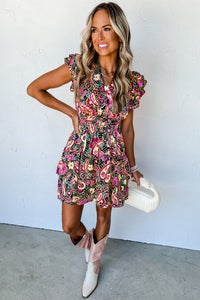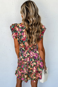 Multicolor Boho Ruffle Cap Sleeve Tiered Dress