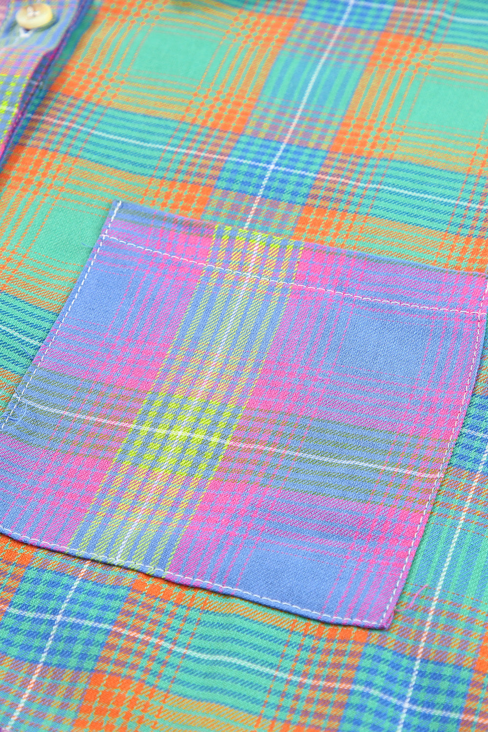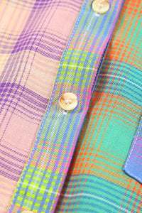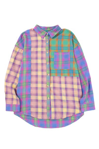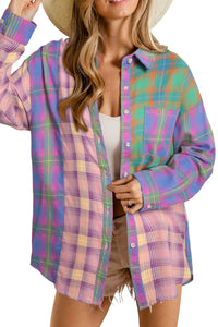 Purple Plaid Colorblock Pockets Button Up Shacket