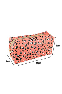 Pink 19*8*9cm Leopard Print Zipped Cosmetic Storage Bag