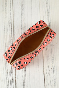 Pink 19*8*9cm Leopard Print Zipped Cosmetic Storage Bag