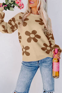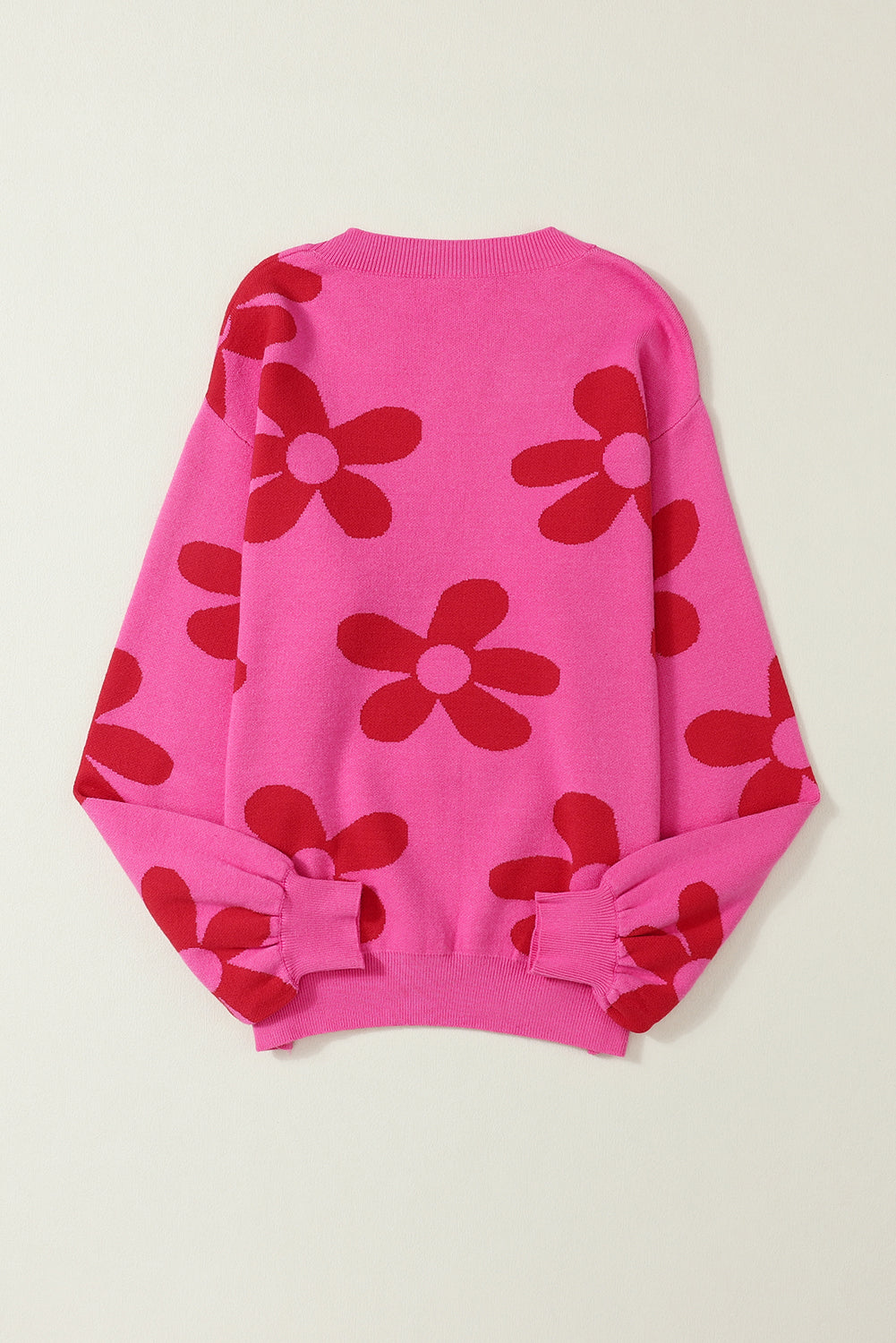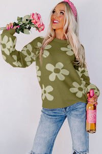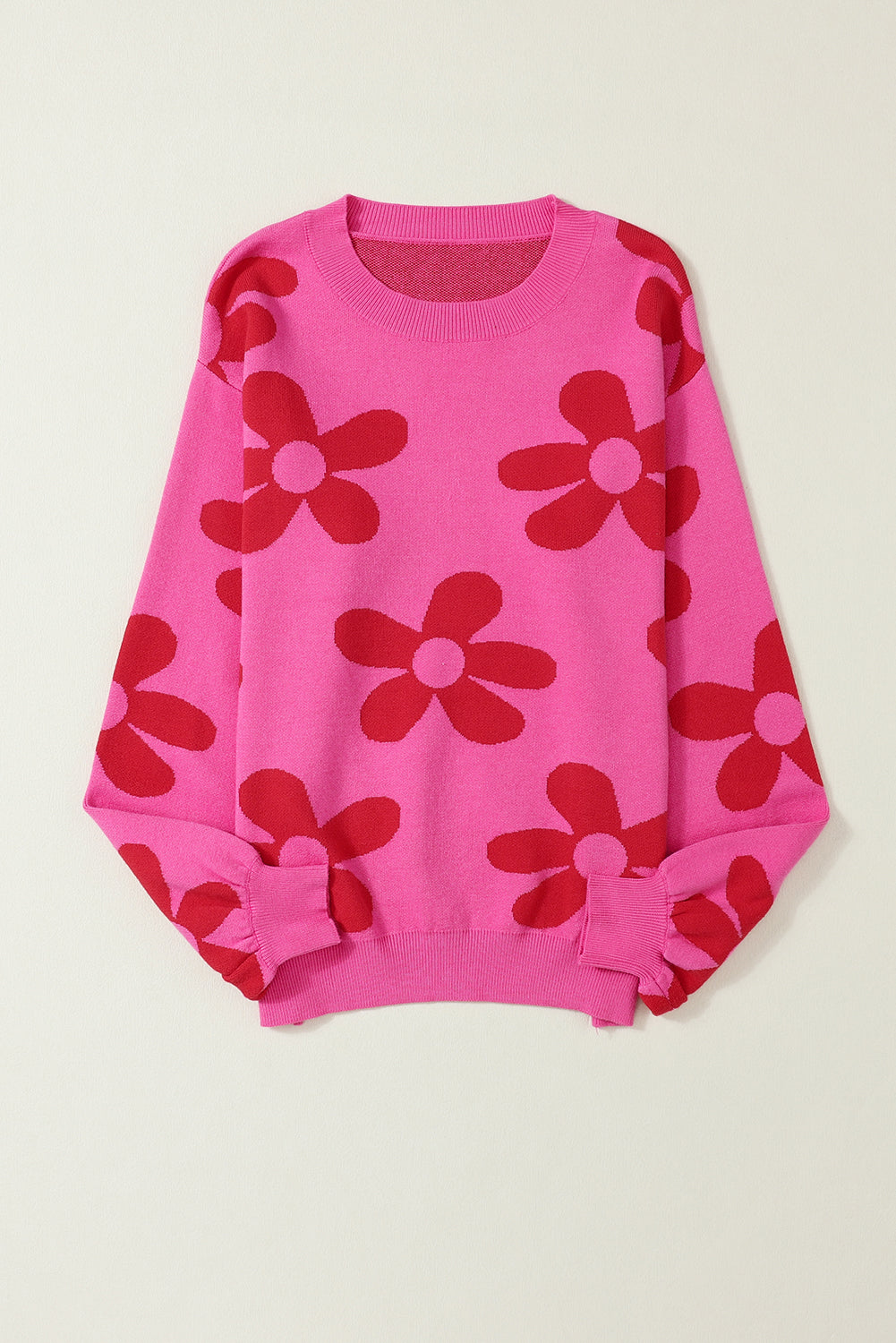 Cypress Floral Print Knitted Long Sleeve Pullover Sweater