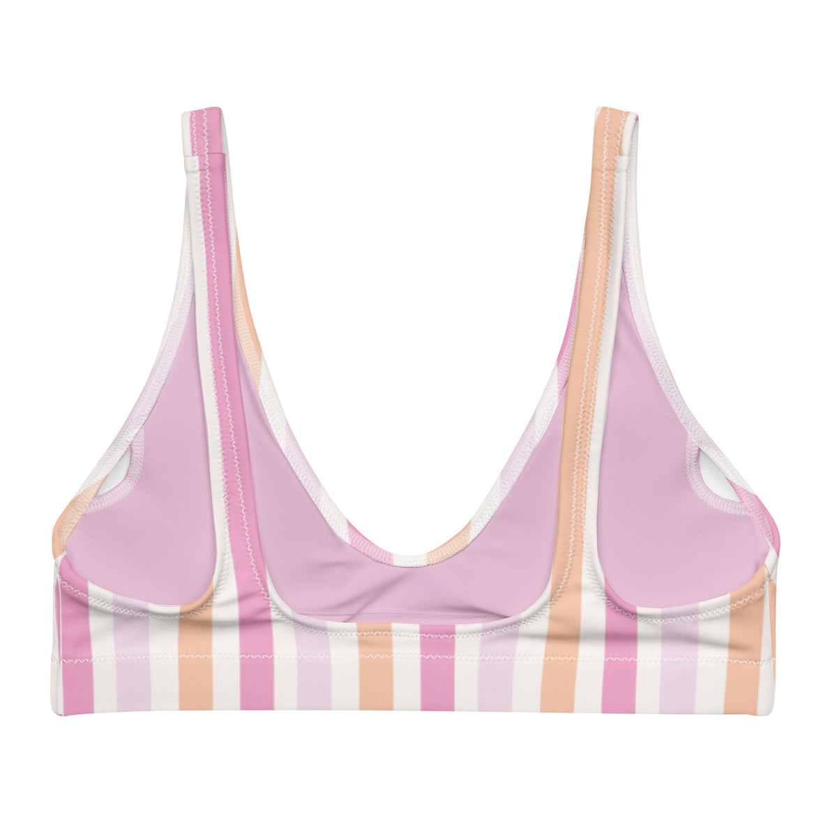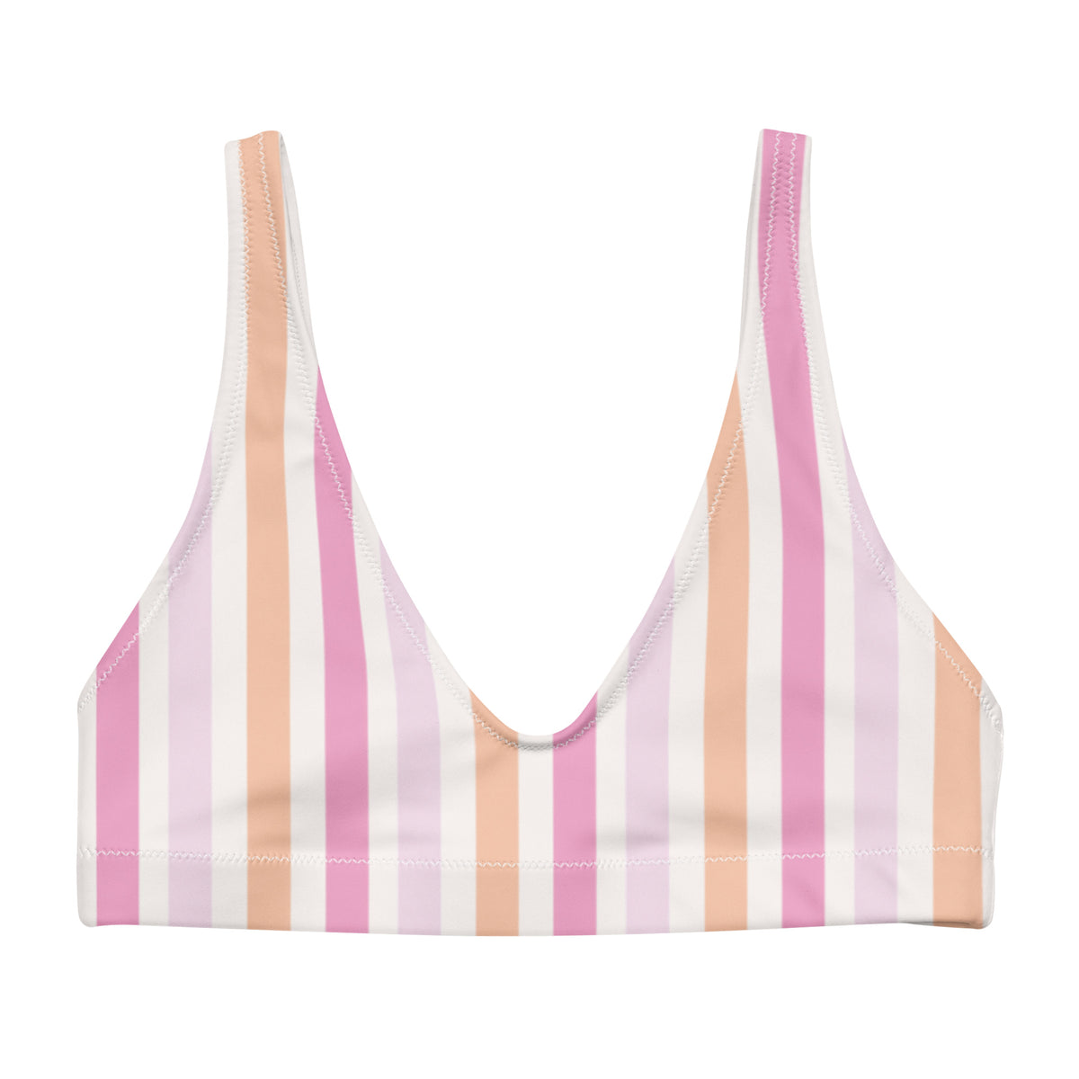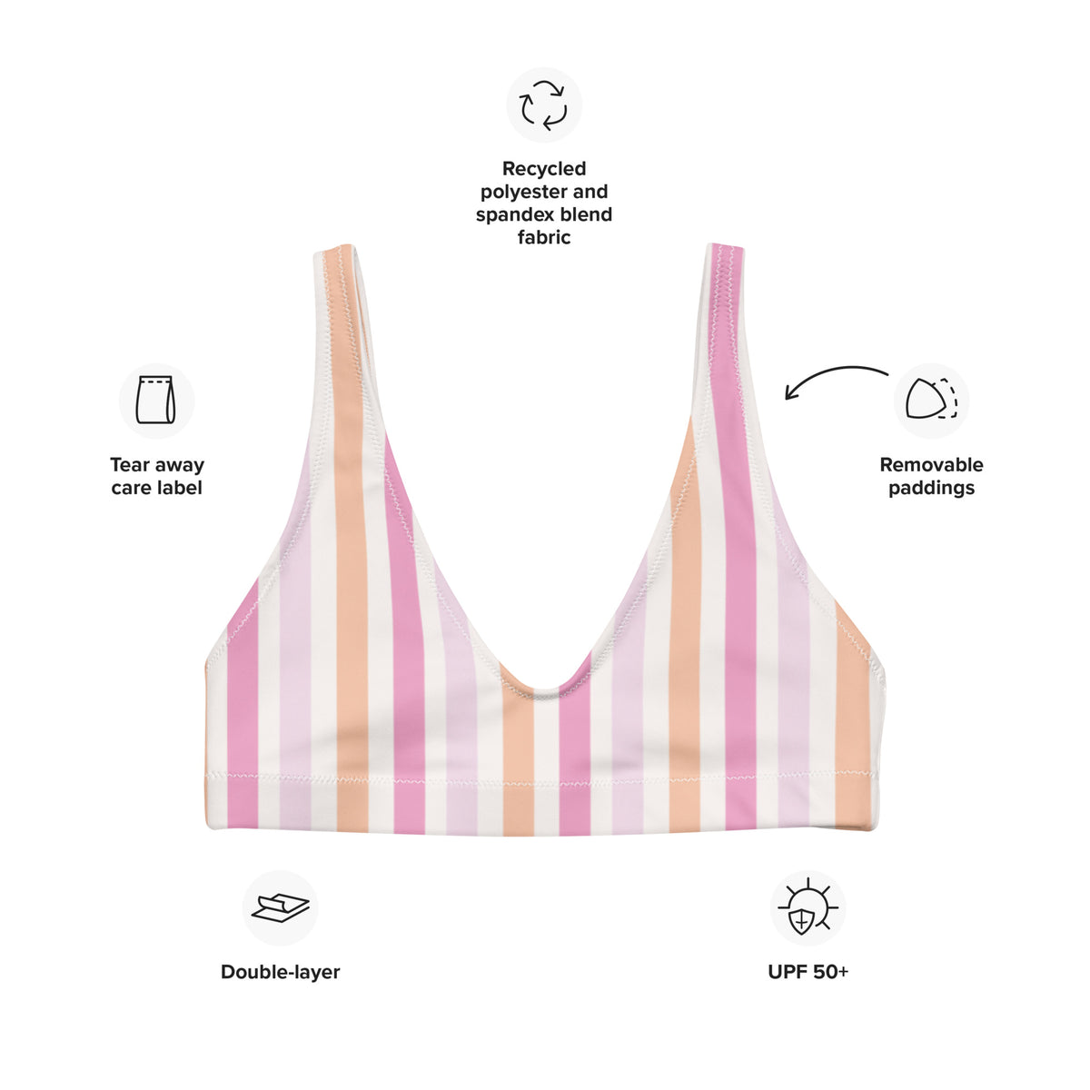 Get this Recycled padded bikini top for your summer adventures! It’s comfortable and includes pads you can remove. To make this top even more versatile, mix and match it with different bikini bottoms for a trendy look.