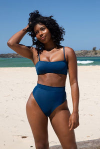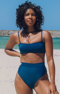 Embrace the colors of summer – like midnight teal, which embodies the deepest blues found in the ocean. And do it all with a little bit of Bermuda in mind! Our Bermuda bikini top in midnight teal can be mixed and matched with pops of colors for the perfect bathing suit.