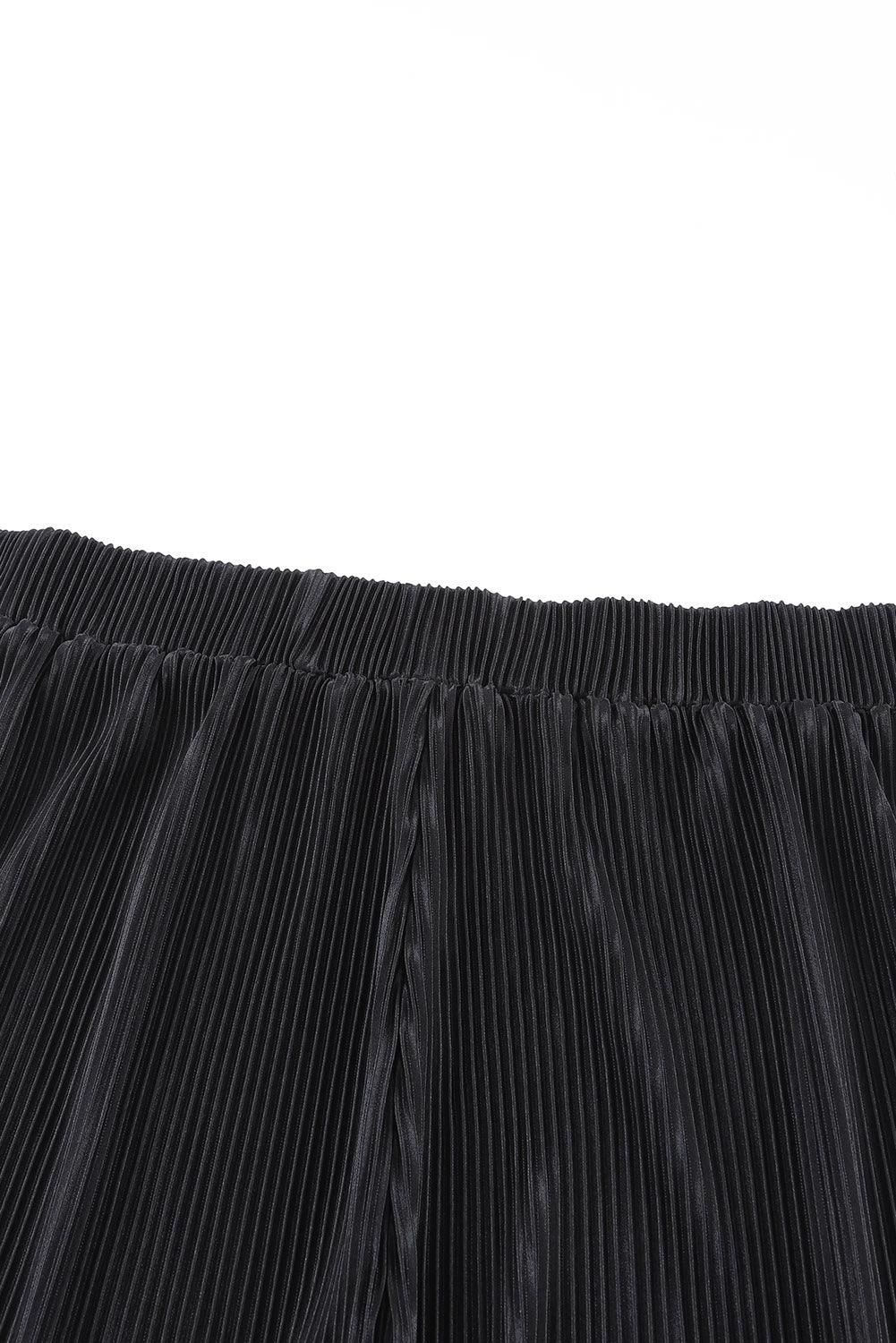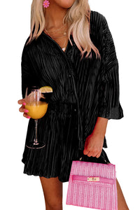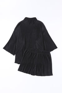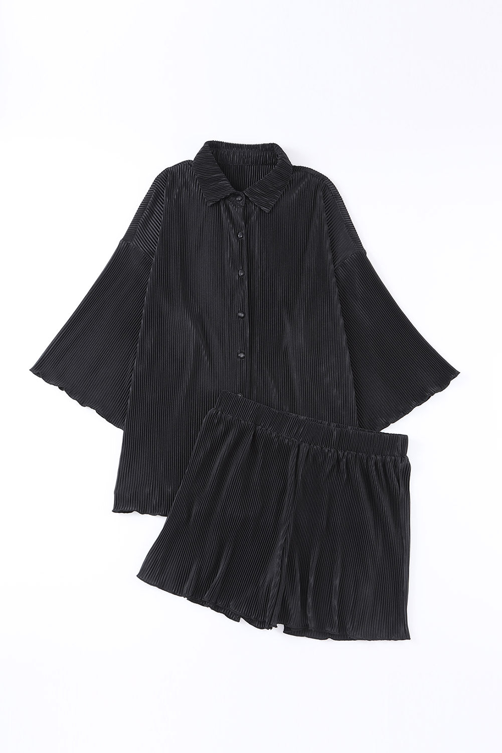 Black Plain Button Up Shirt and High Waisted Shorts Loungewear Set