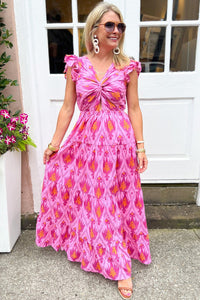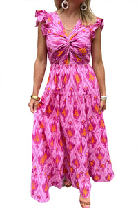 Bonbon Boho Abstract Print Tiered Maxi Dress