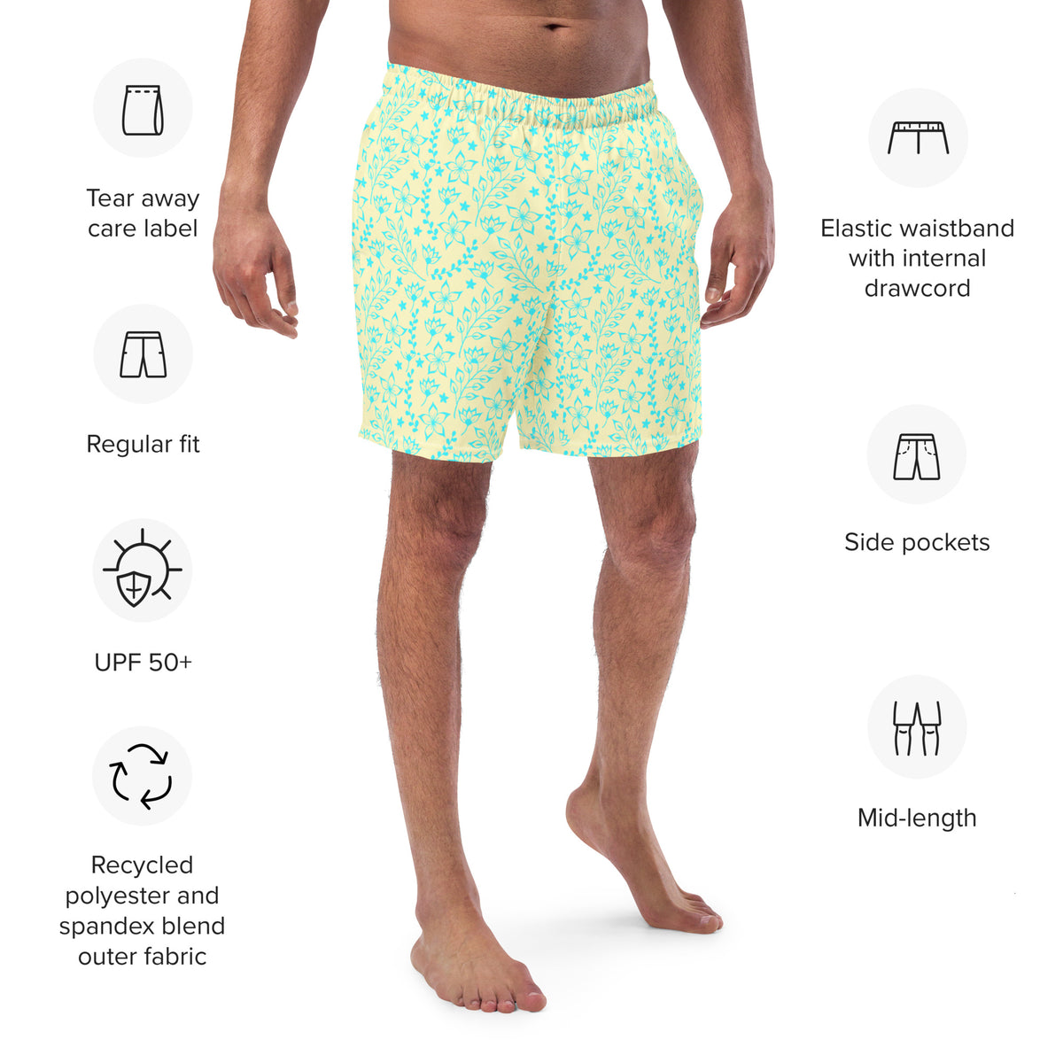 ECO MEN'S SWIM SHORTS | GARDEN PARTY SKY BLUE FLORALS