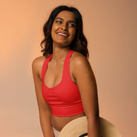 This sports bra is the perfect workout top for exercising. The compression fabric along with double-layered front and shoulder straps ensures great support while running, jumping, or pumping iron. Wear it while exercising or style it as a streetwear top on sunny days!