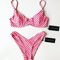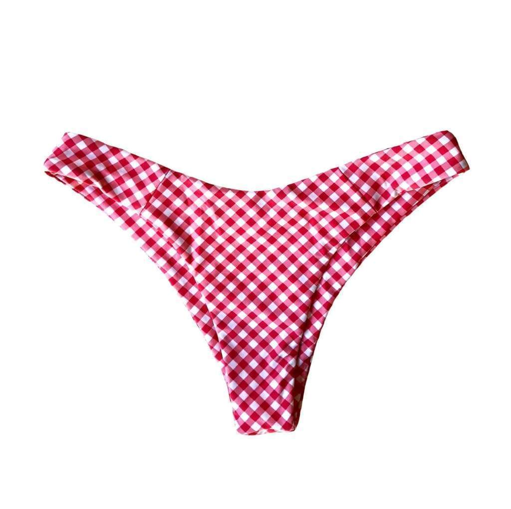 The classic Brazilian bikini bottoms meet the classic American red gingham pattern for a unique, classy, and sexy bathing suit that you can wear all summer long. Featuring a high hip v cut fit with a cheeky cut in the back.