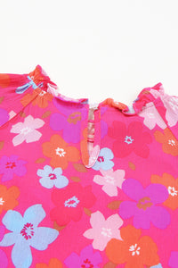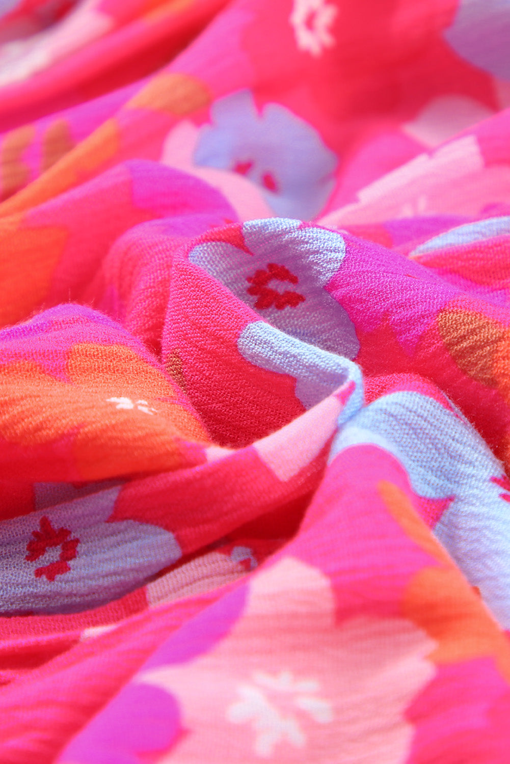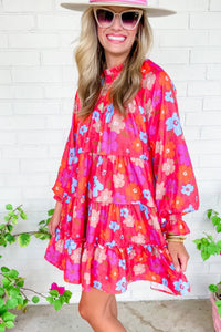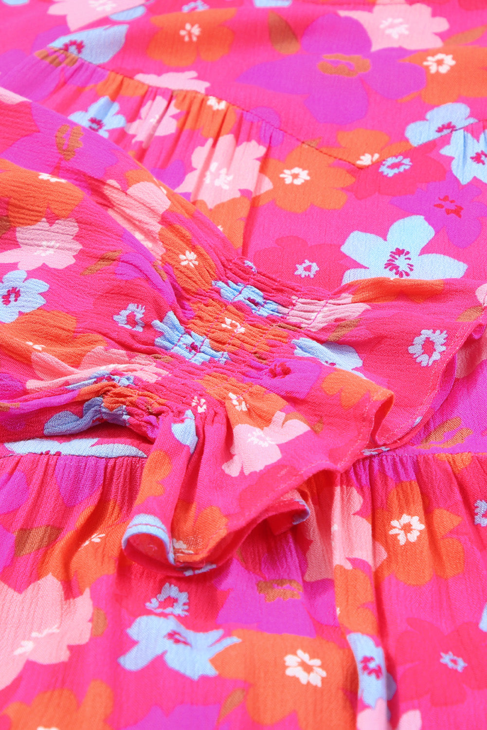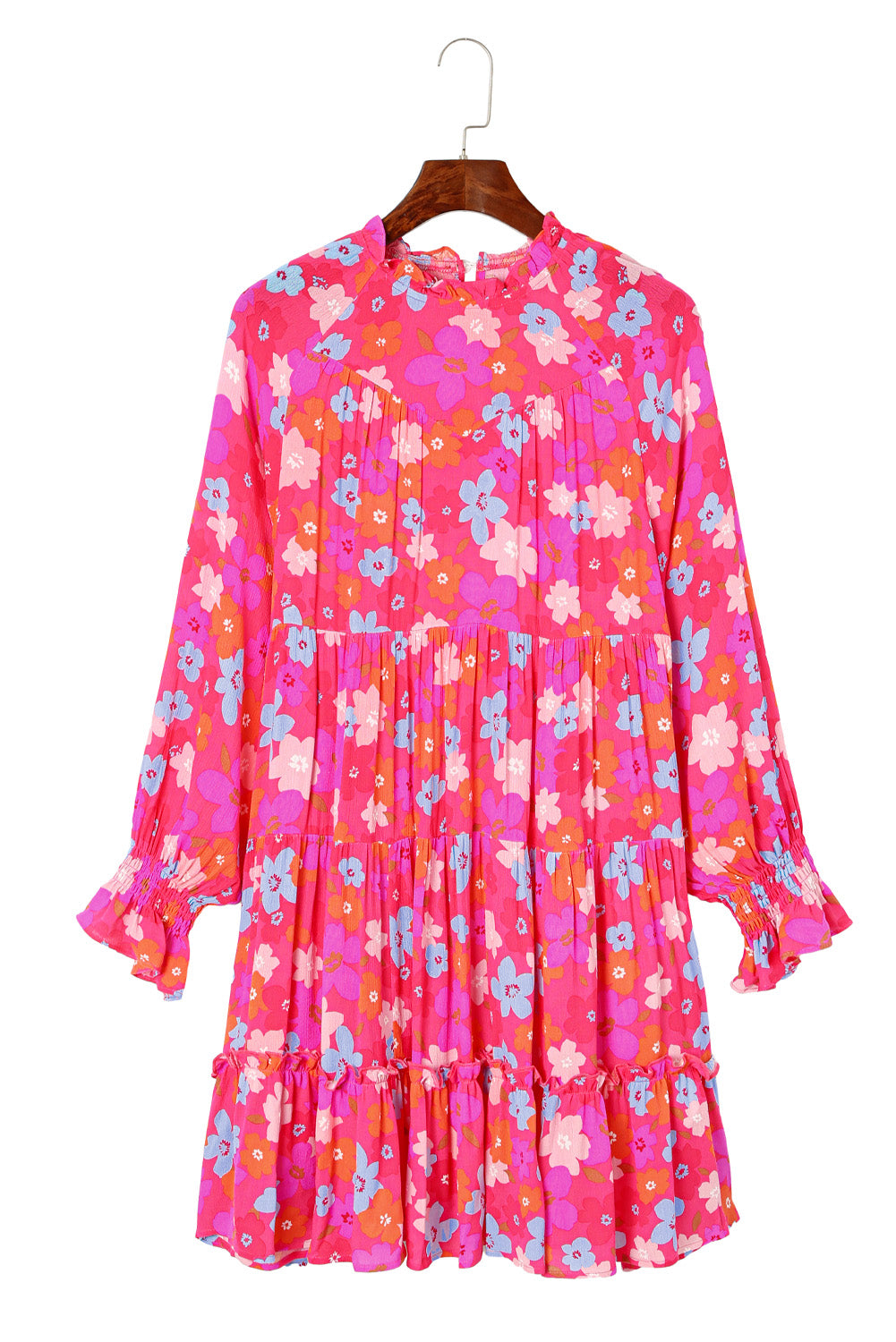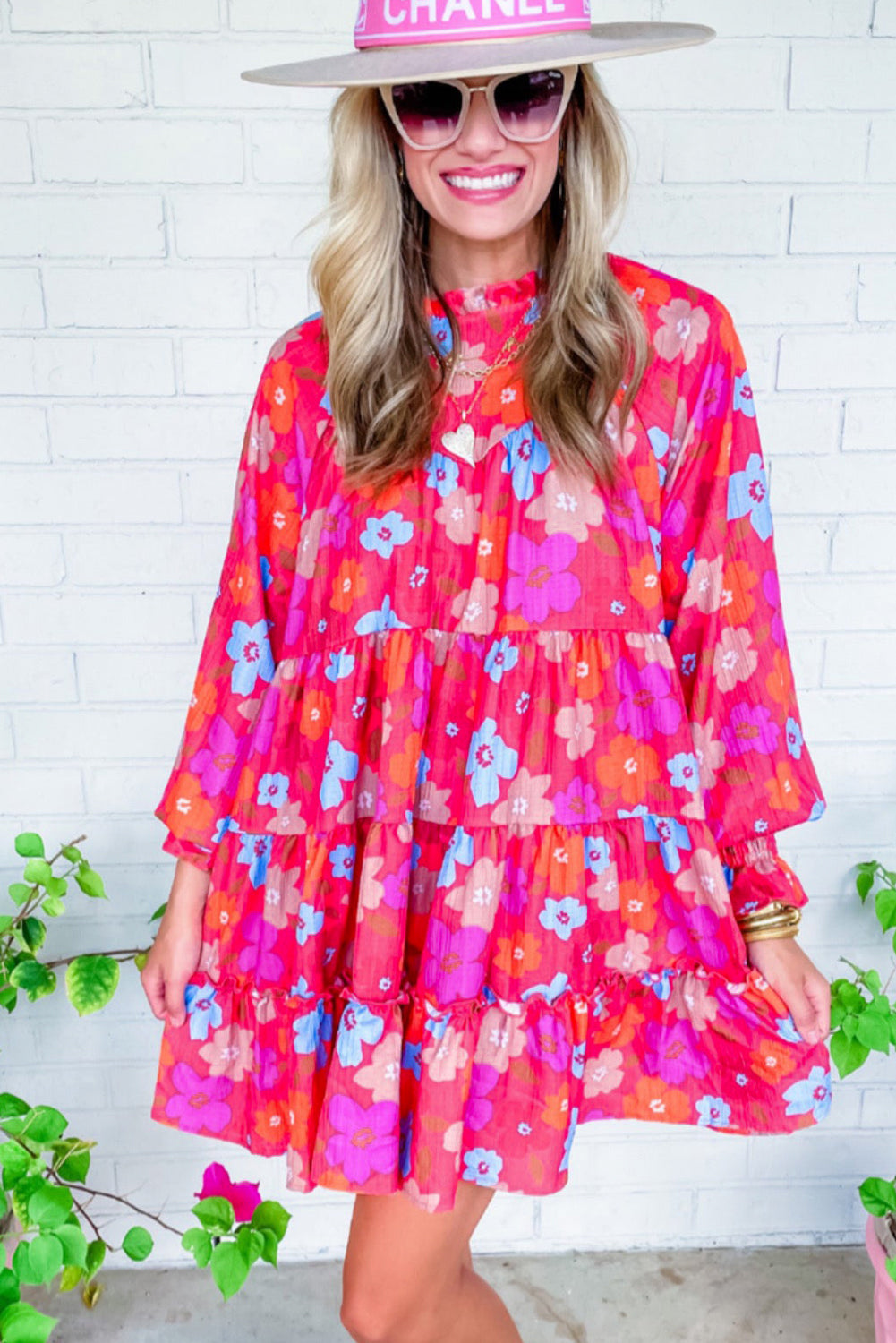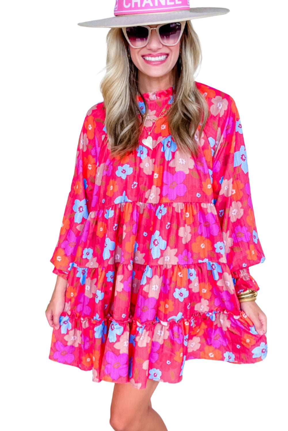Multicolour Floral Bubble Sleeve Tiered Babydoll Dress