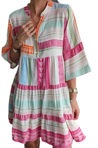 Multicolour Geometric Pattern Ruffle Tiered Mini Dress