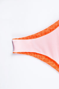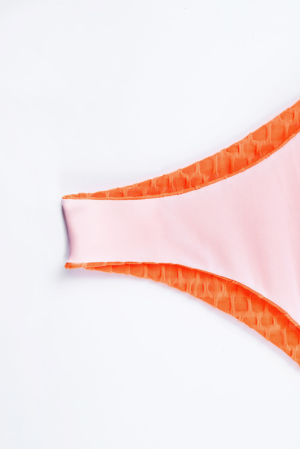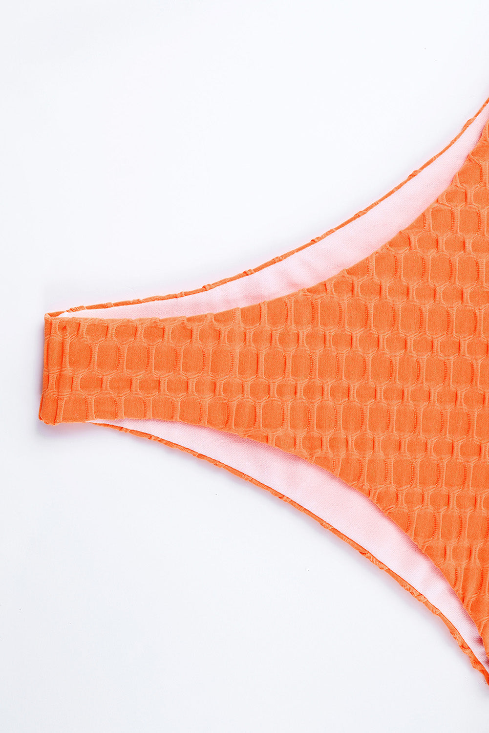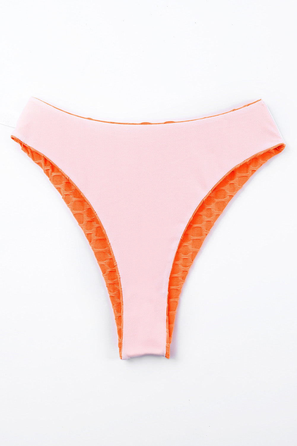 - The bikini bottom is made from a textured fabric with a honeycomb pattern. It provides a textured and tactile feel, making it stand out from smooth or plain swimwear options.