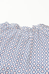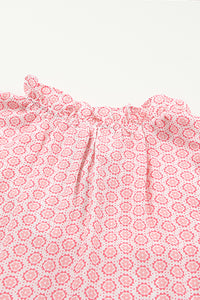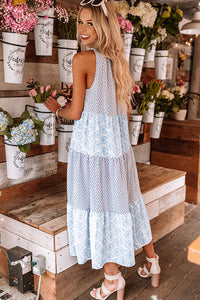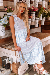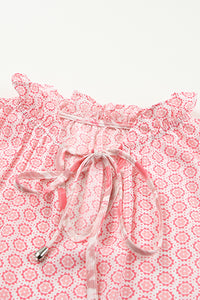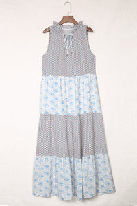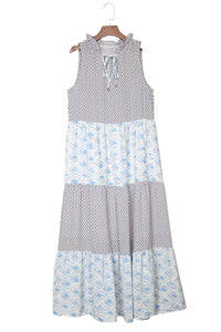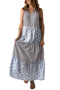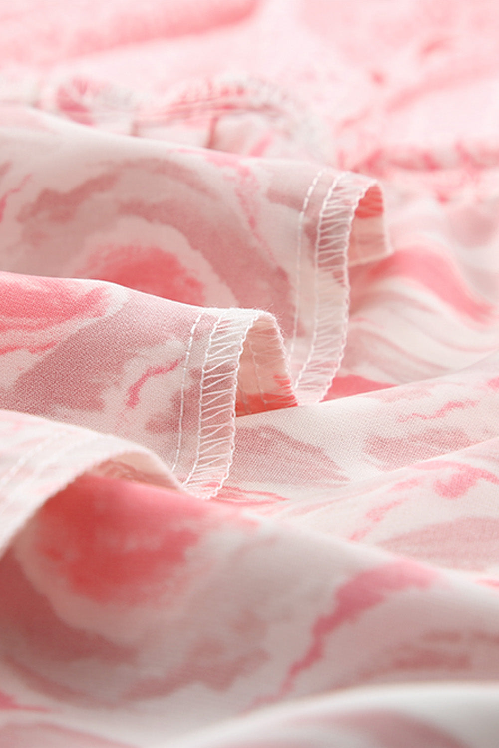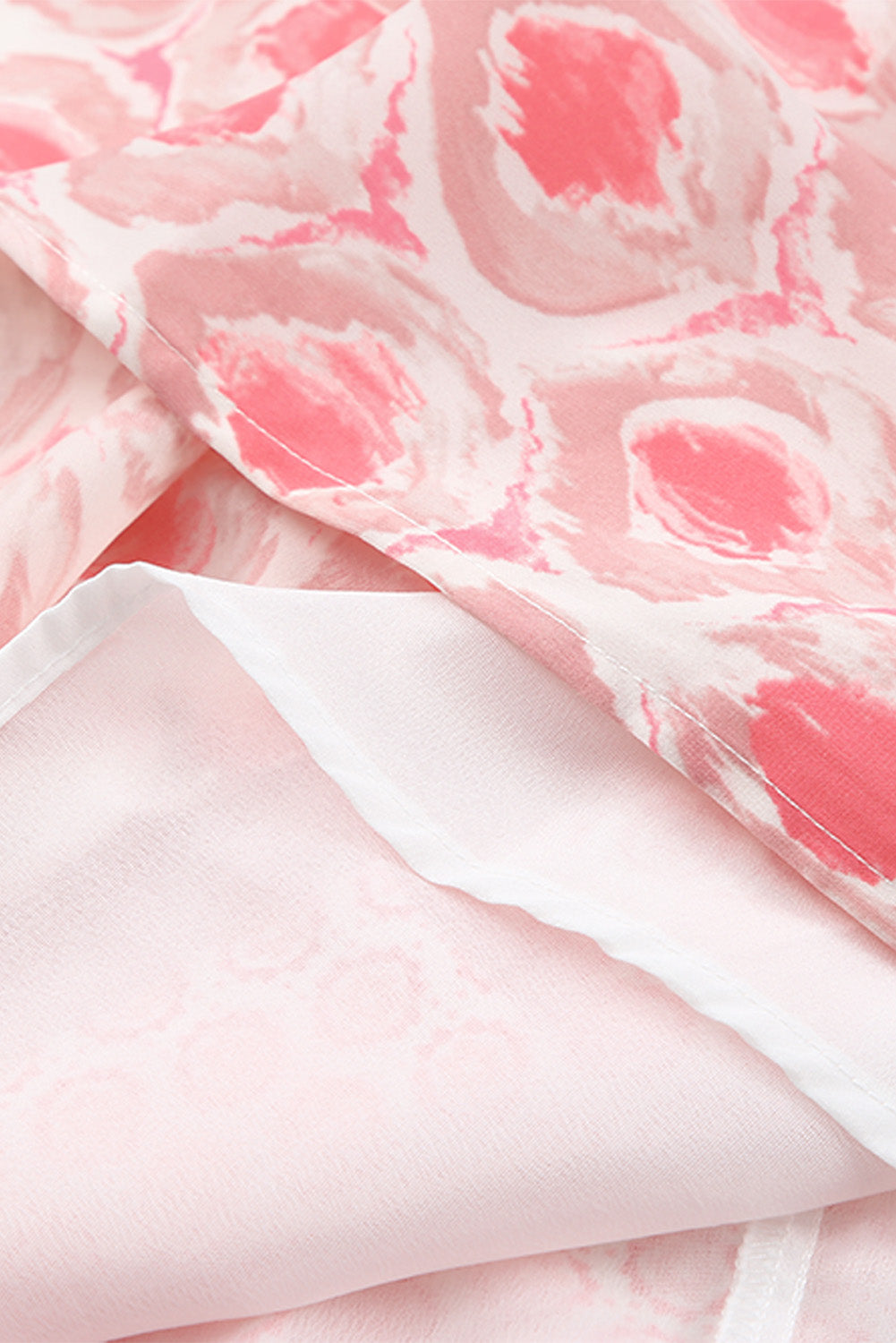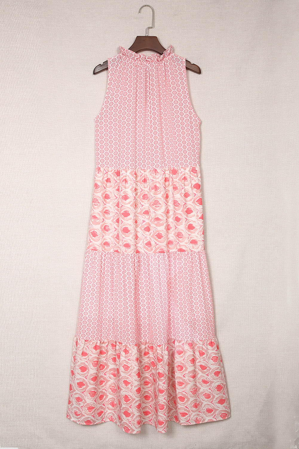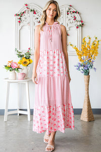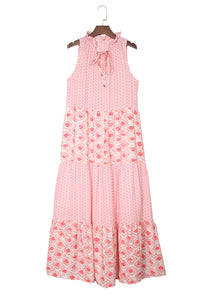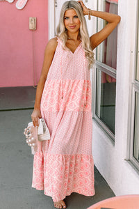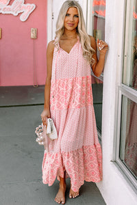Pink Abstract Sleeveless V Neck Summer Tiered Dress