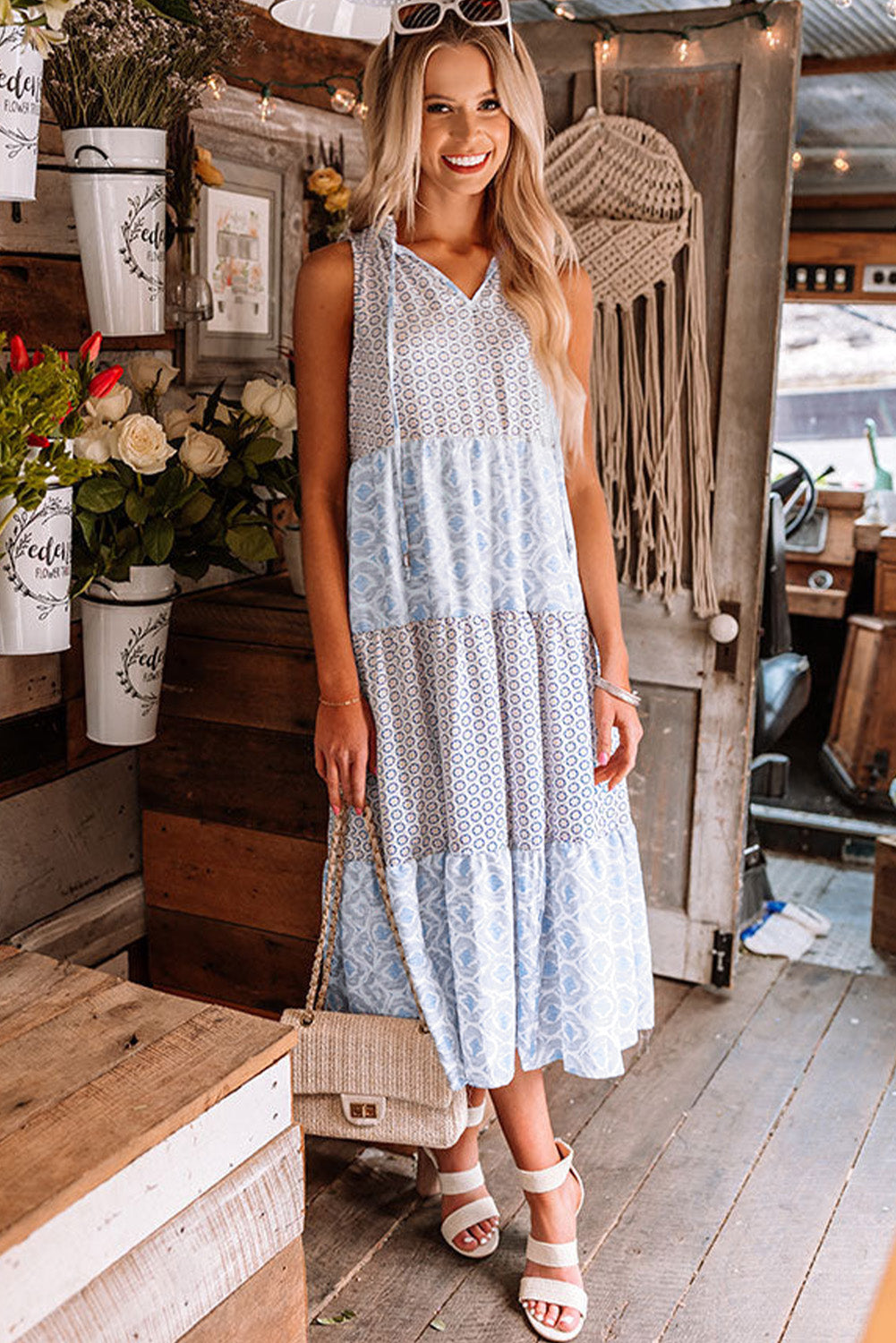 •Add a wide-brim hat and statement jewelry to complete the boho vibe.