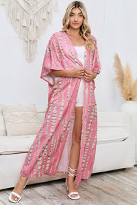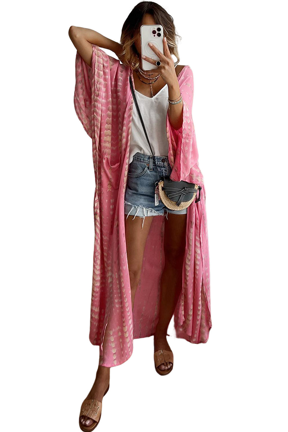 Pink Bohemian Tie Dye Oversize Long Kimono