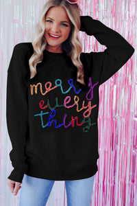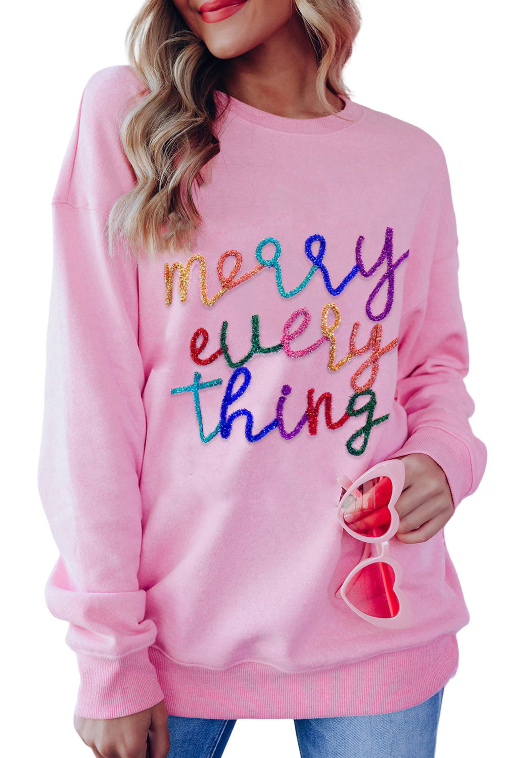 Pink Merry Every Thing Glitter Letter Christmas Sweatshirt