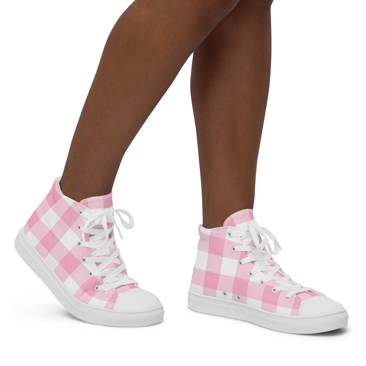 PINKCOLADA HIGH TOP CANVAS SHOES - PINK GINGHAM