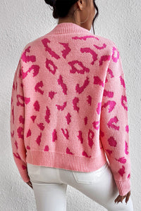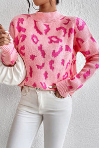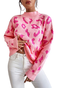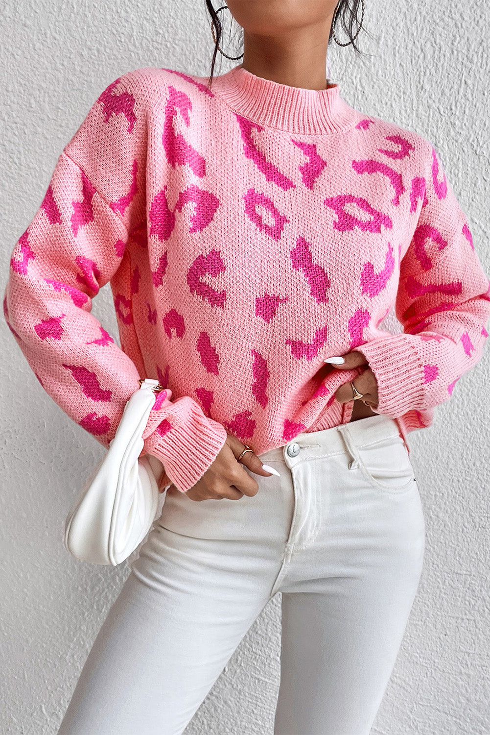 Pirouette Leopard Pattern Mock Neck Ribbed Trim Sweater