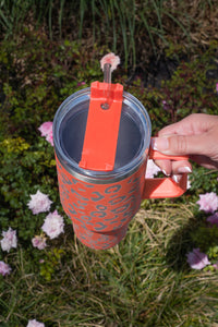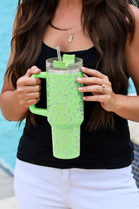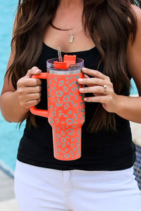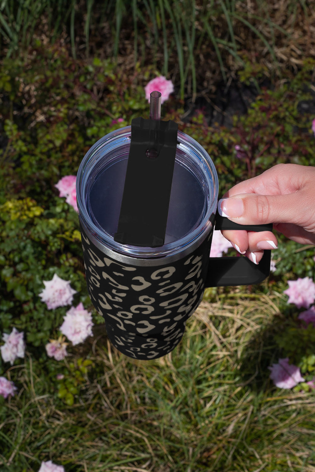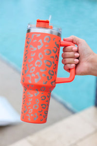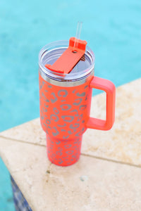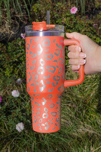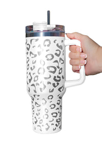 • Stay hydrated and stylish with this Purple 304 Leopard Stainless Double Insulated Tumbler Mug with Handle.