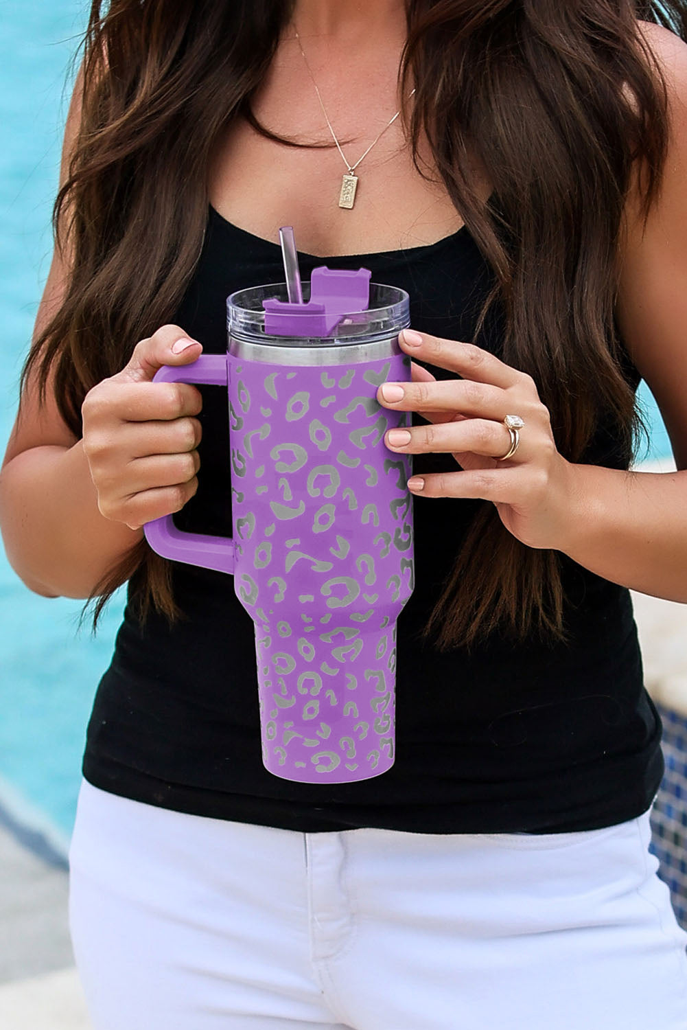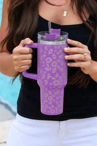 Purple 304 Leopard Stainless Double Insulated Tumbler Mug with Handle