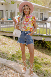 - This floral top pairs well with any jeans or denim shorts for a stylish look.