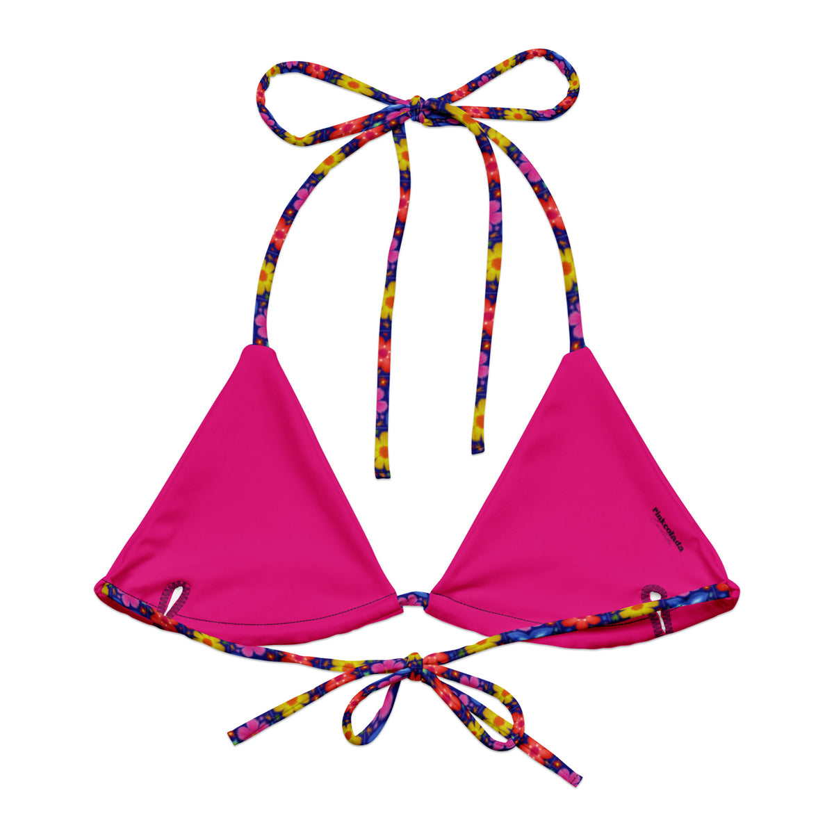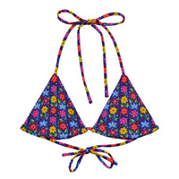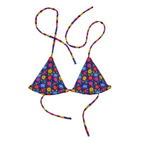 Disclaimer: To make your All-Over Print Recycled String Bikini Top last longer, thoroughly rinse it off after each use and get rid of any chlorine/salt residue.