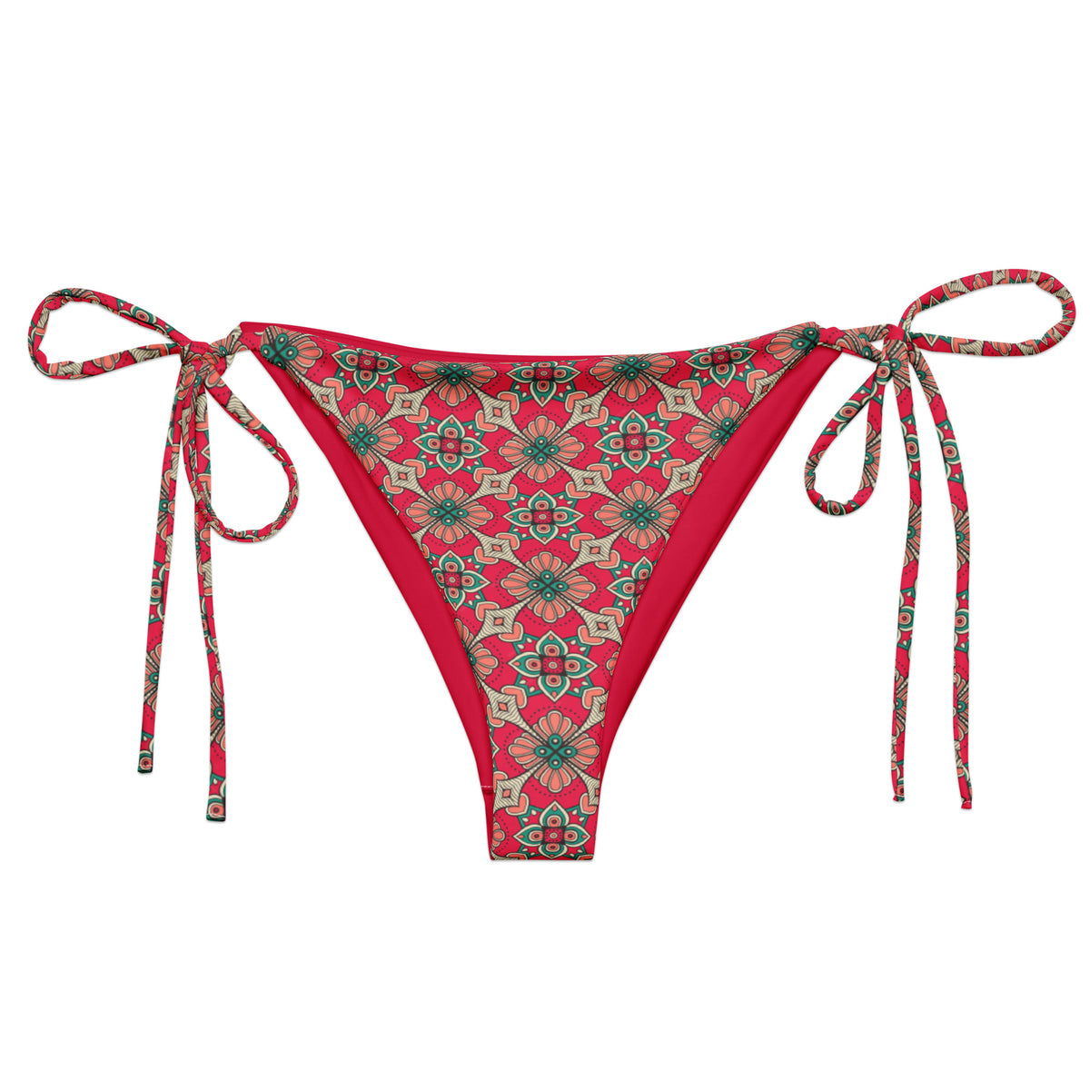 Did someone say sunbathing time? This summer, sit back and relax by the poolside wearing this versatile All-Over Print Recycled String Bikini Bottom. Enjoy the soft, stretchy recycled polyester piece with UPF 50+ and straps you can tighten for a better fit!