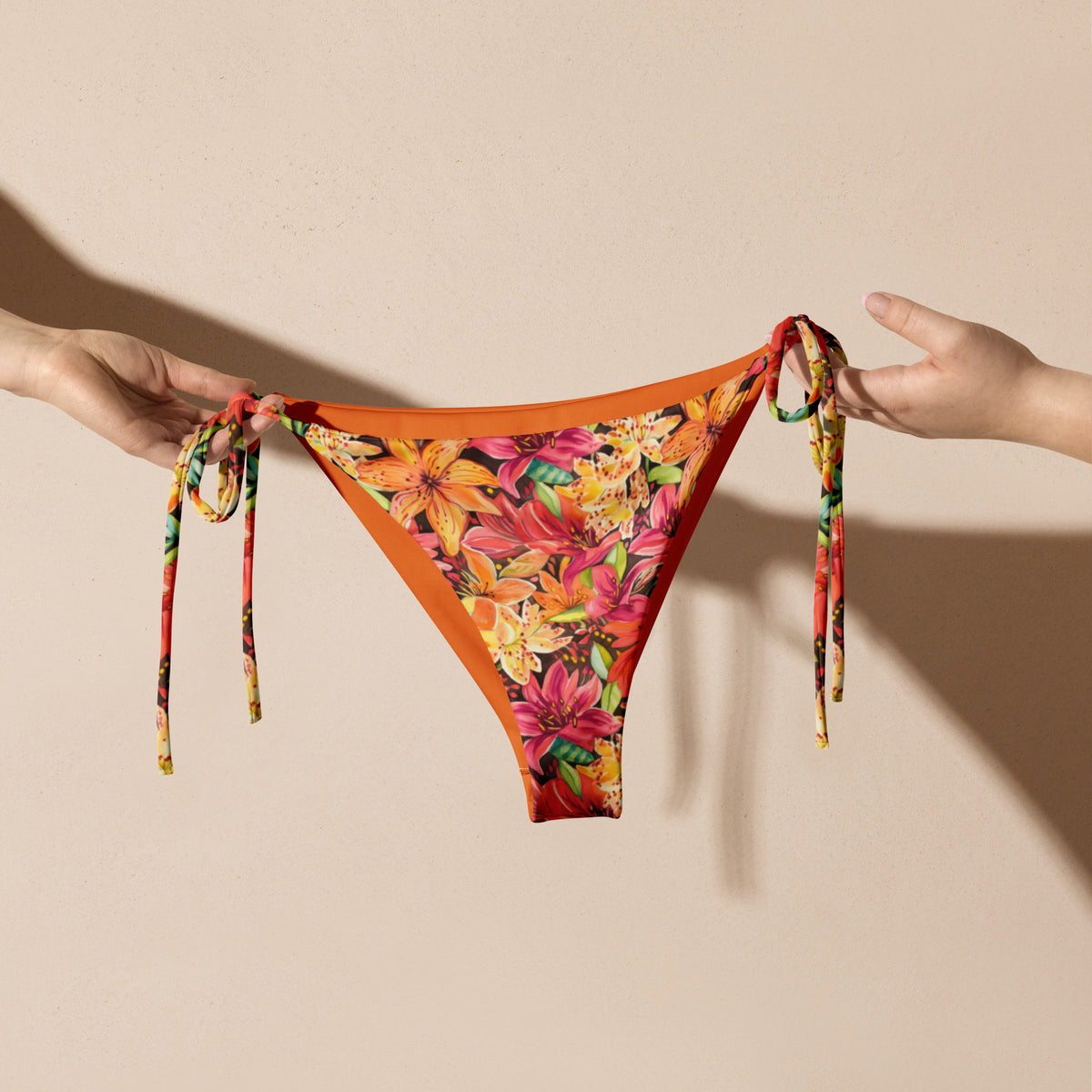 • To make your All-Over Print Recycled String Bikini Bottom last longer, thoroughly rinse it off after each use and get rid of any chlorine/salt residue.