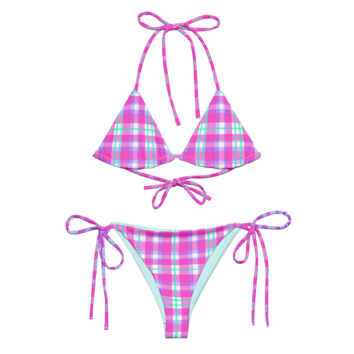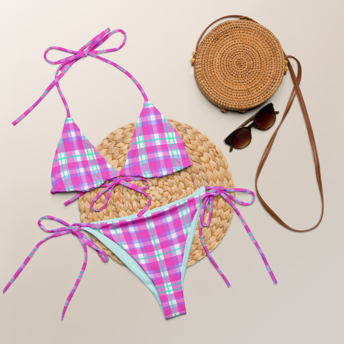 Disclaimer: To make your All-Over Print Recycled String Bikini last longer, thoroughly rinse it off after each use and get rid of any chlorine/salt residue.