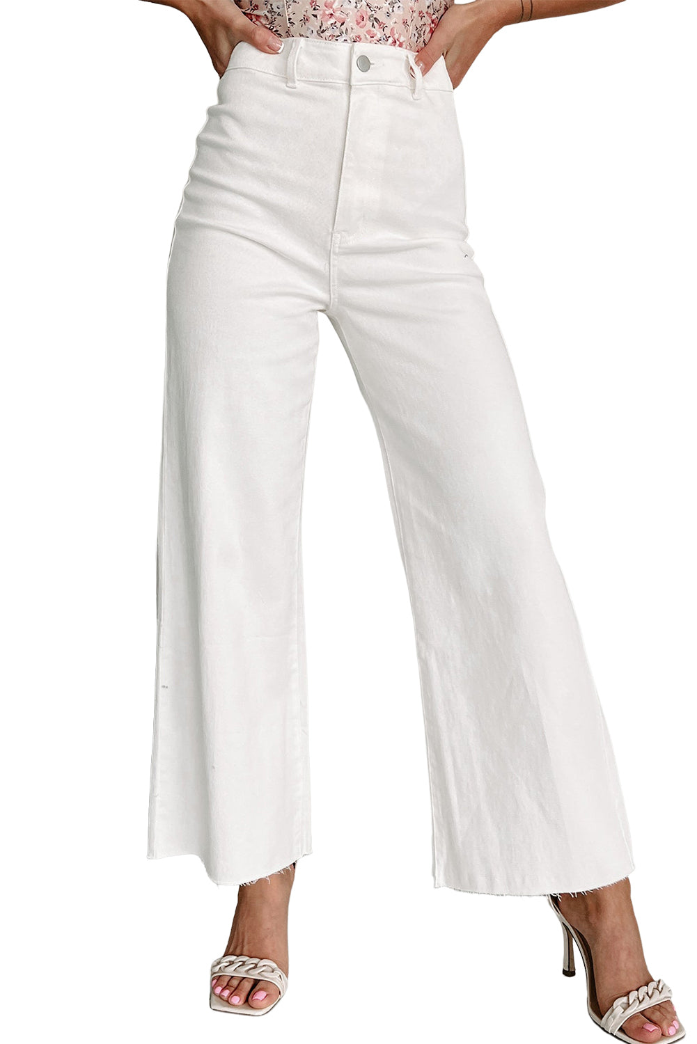 • These Solid Raw Hem Wide Leg Crop Jeans are a trendy addition to wardrobes