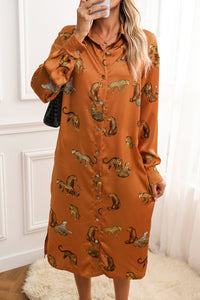 Yellow Animal Print Button-Up Split Maxi Shirt Dress